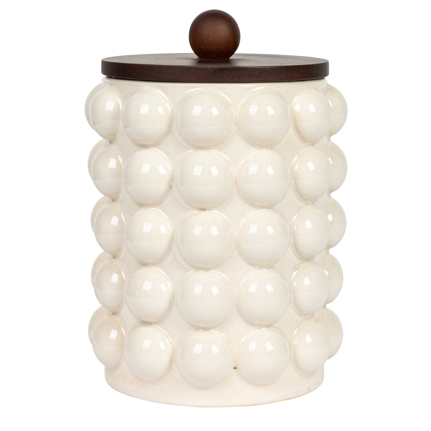 Stoneware Canister w/ Raised Dots & Acacia Wood Lid & Natural
