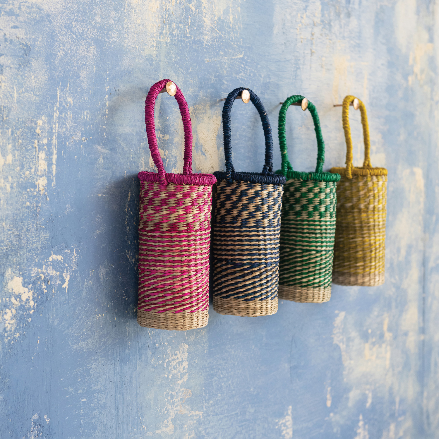 Hand-Woven Seagrass Bottle Basket with Handle, 4 Colors