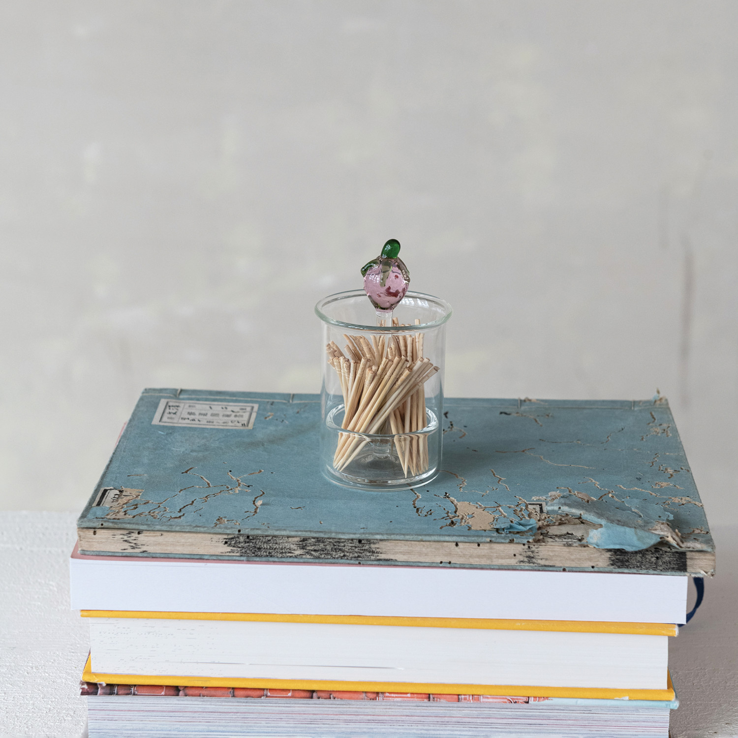 Glass Toothpick/Cotton Swab Holder with Hand-Blown Strawberry