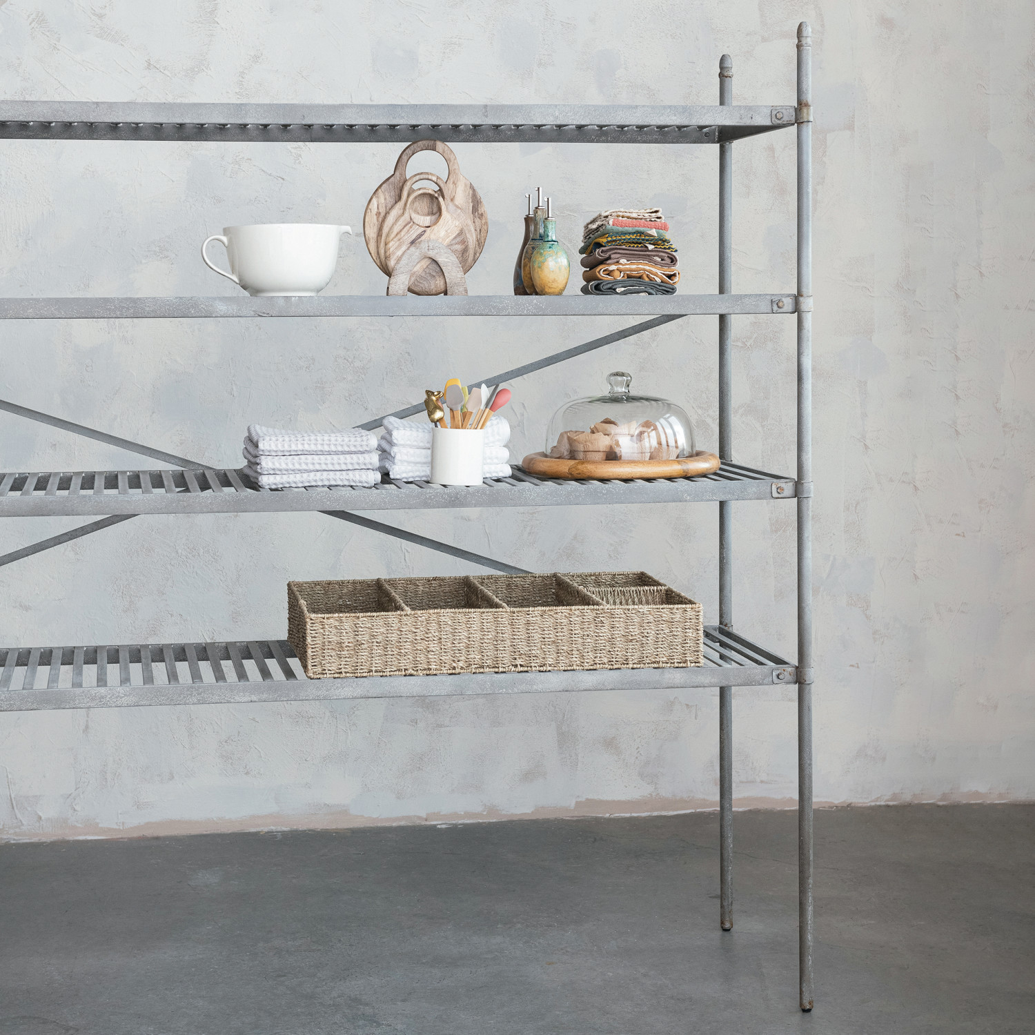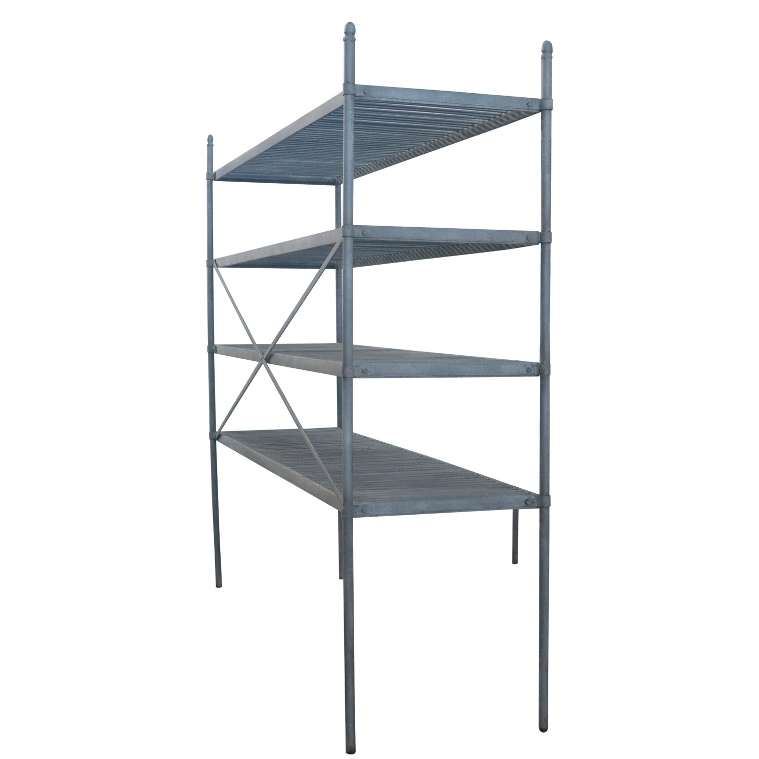 Metal Vintage Reproduction Shelf w/ 4 Slatted Shelves, Zinc Finish, KD