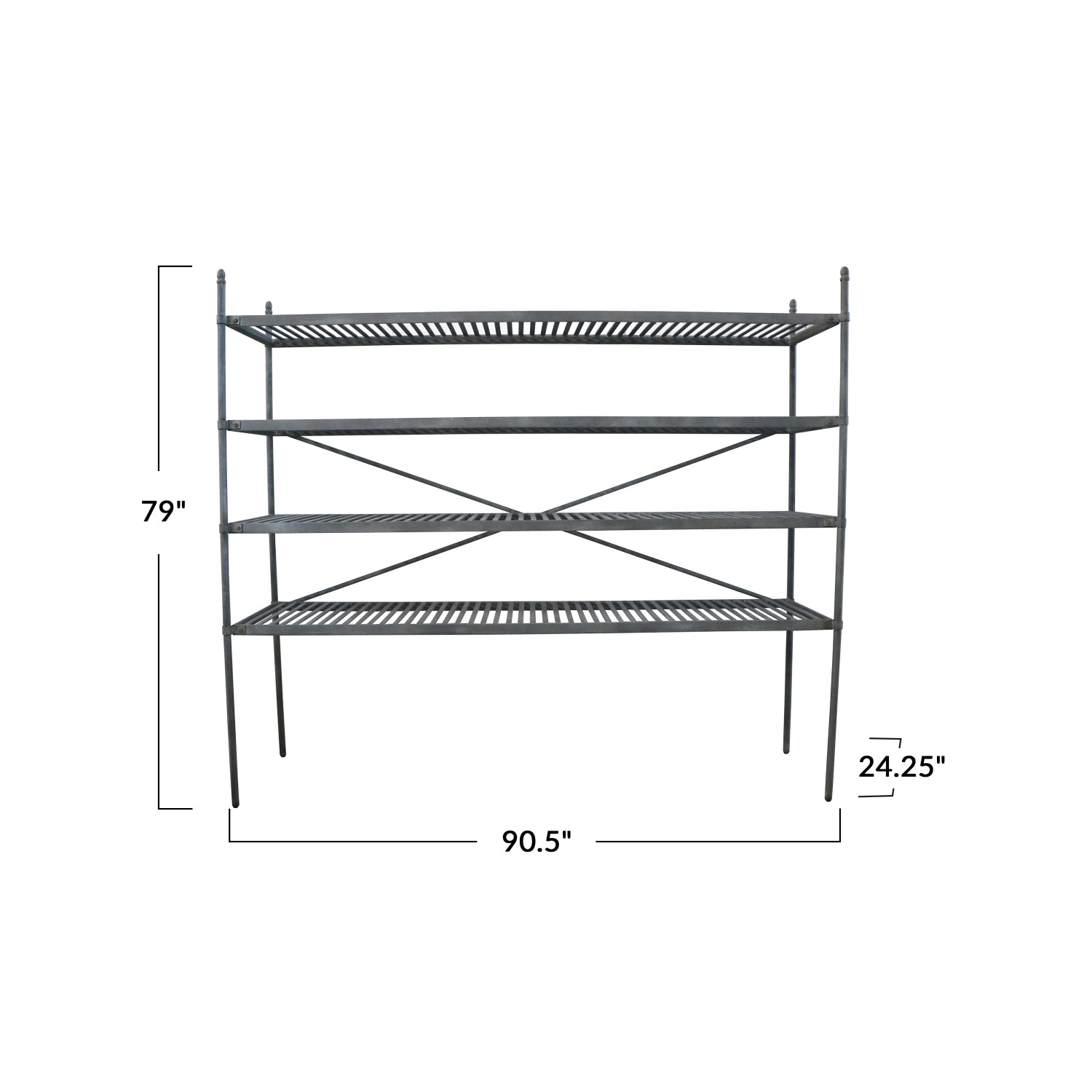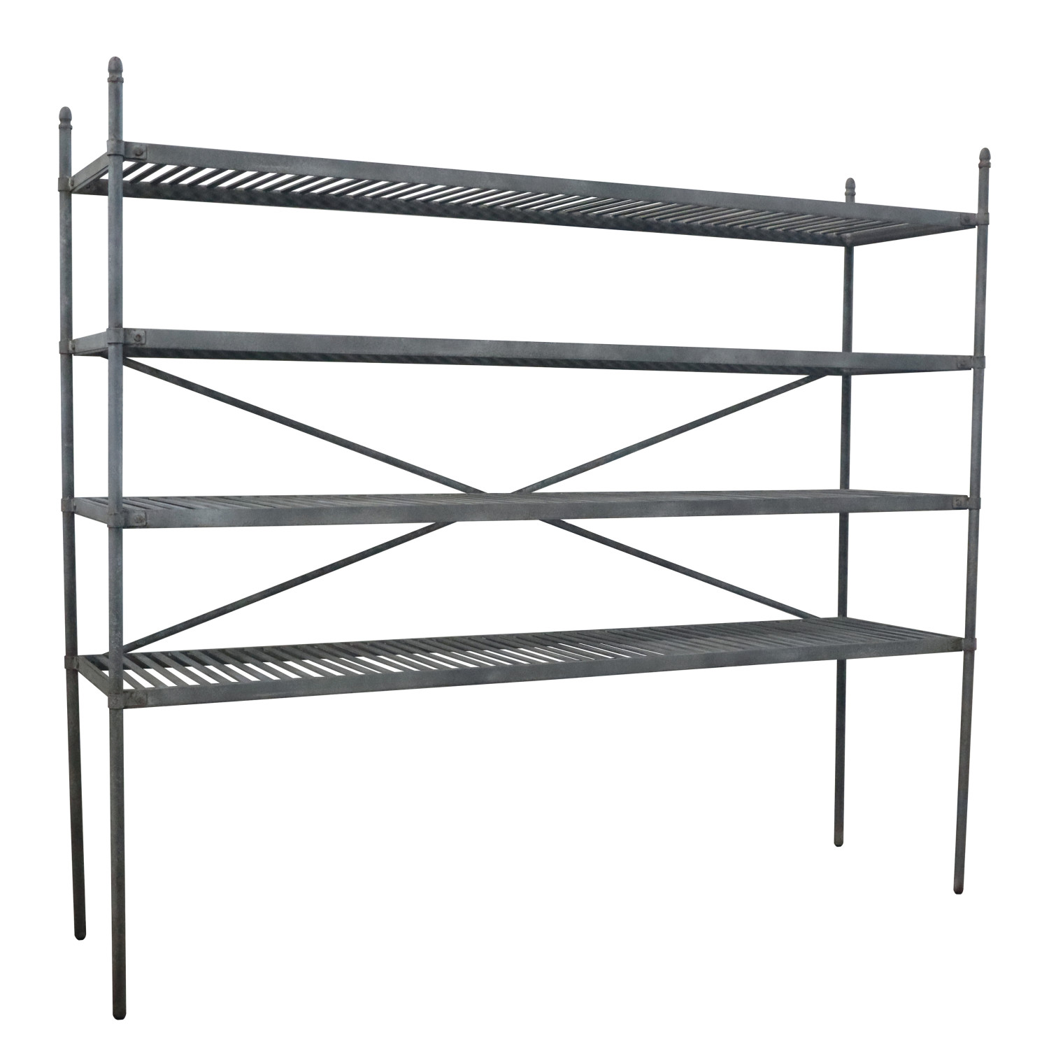 Catalog Name: 90-1/2"W x 24-1/4"D x 79"H Metal Vintage Reproduction Shelf w/ 4 Slatted Shelves, Zinc Finish, KD, Truck Ship