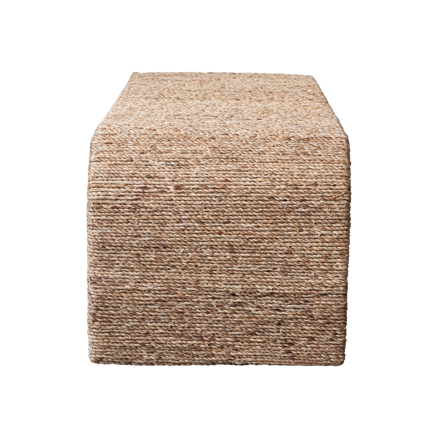 Woven Water Hyacinth & Acacia Wood Bench w/ Waterfall Edge