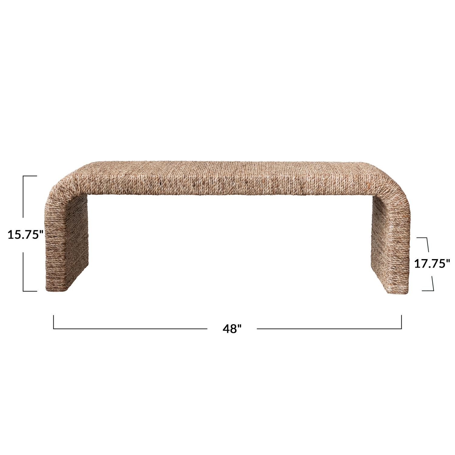 Catalog Name: 48"W x 17-3/4"D x 15-3/4"H Woven Water Hyacinth & Acacia Wood Bench w/ Waterfall Edge, Natural, Truck Ship