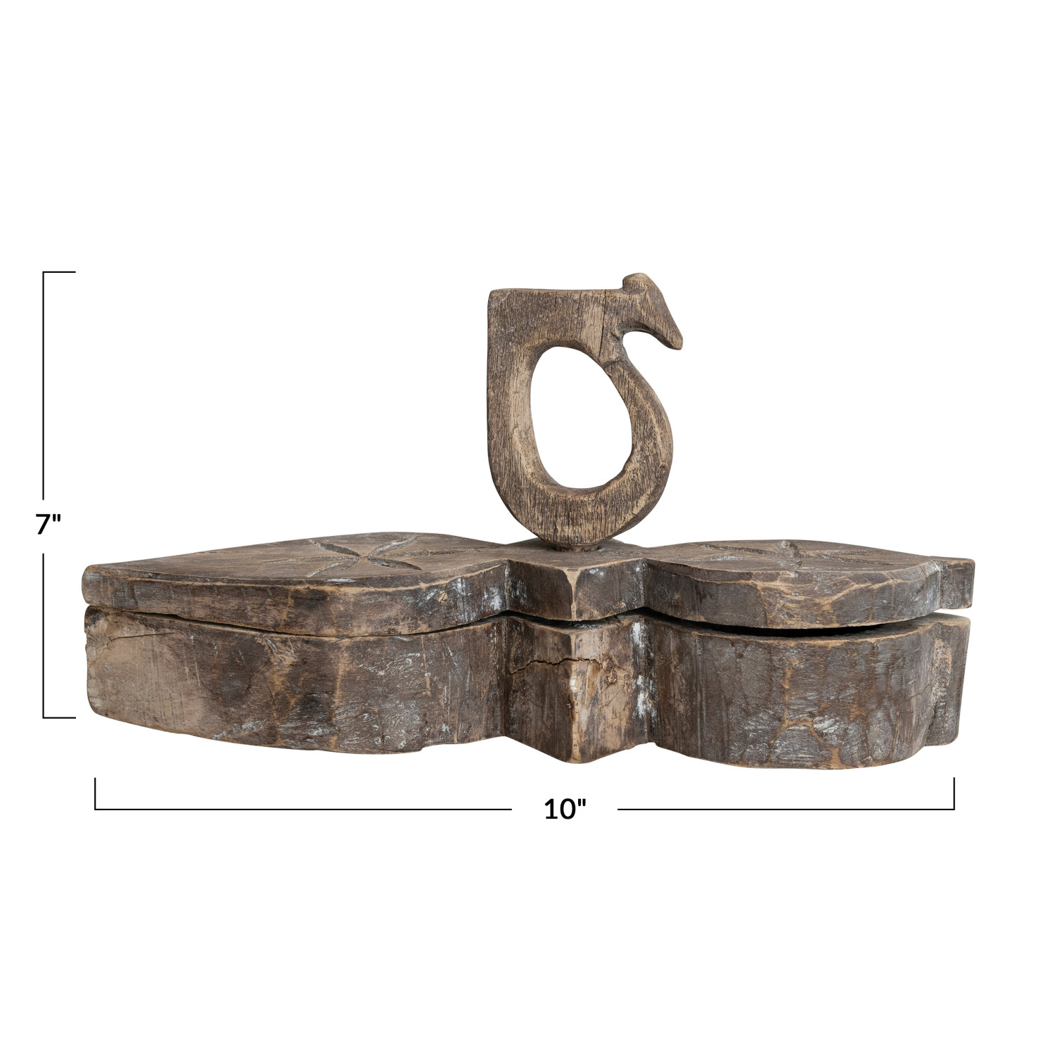 Catalog Name: Approximately 10"L x 3-1/2"W x 7"H Found Decorative Wood Masala Box w/ Handle & 2 Sections (Each One Will Vary)