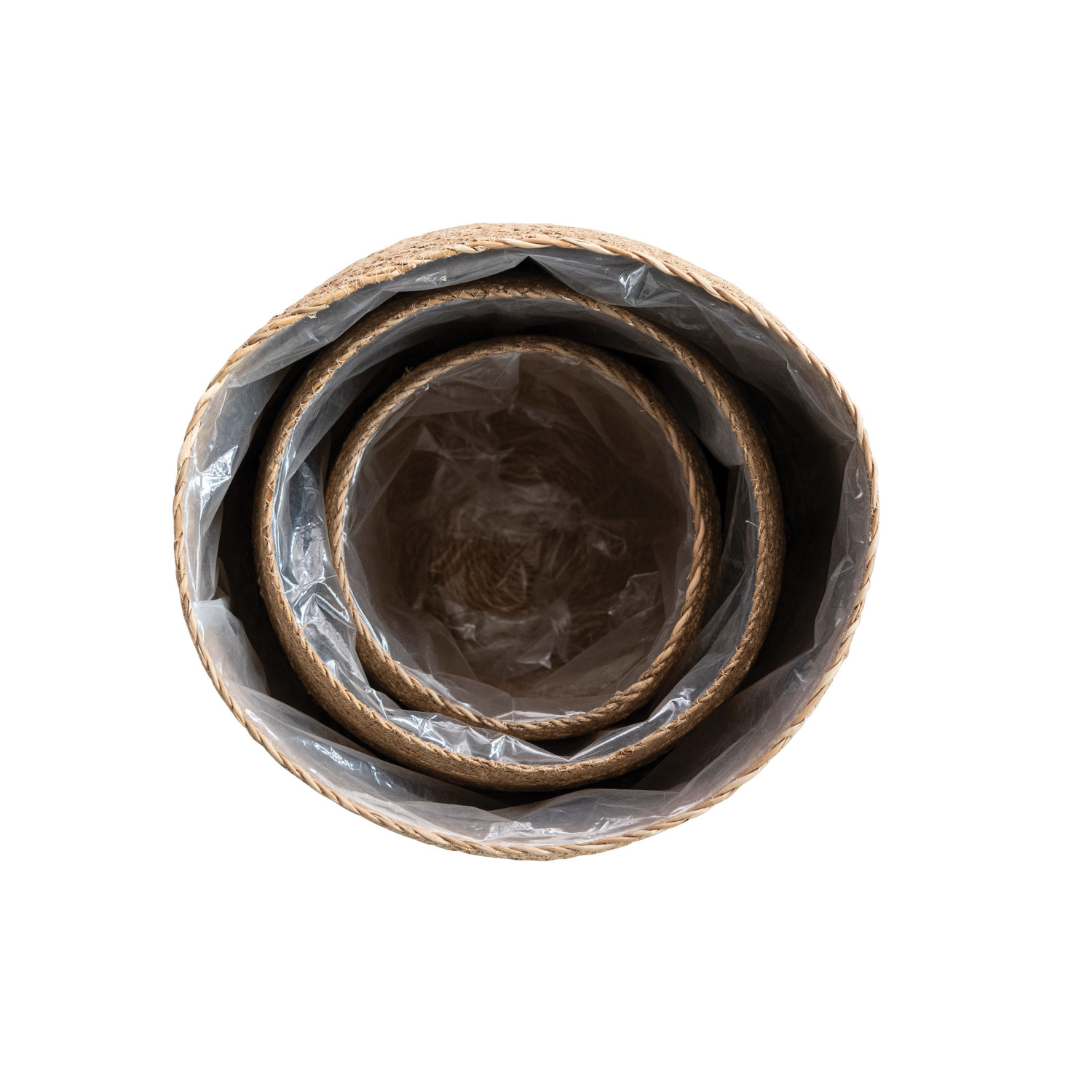 Decorative Woven Seagrass Baskets w/ Plastic Lining, Set of 3
