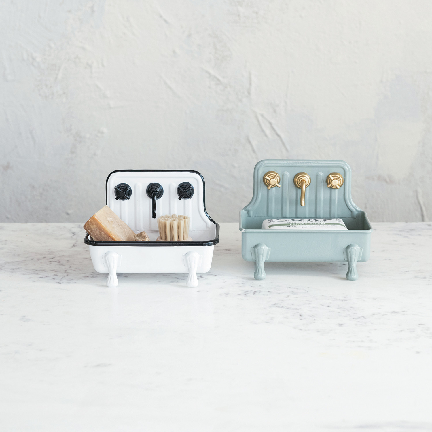 This Metal Soap Dish, with its unique sink and faucet design, is finished in an elegant grey and gold, adding a touch of sophistication to the bathroom setup. The piece measures 5.75 inches in length, 4.25 inches in width, and 4.5 inches in height, providing ample space for soap without taking up too much room on the countertop. Whether the bathroom features a farmhouse, rustic, or industrial theme, this soap dish fits right in, offering both visual appeal and practical use. Its sturdy construction ensures longevity, making it a valuable addition to daily routine.
