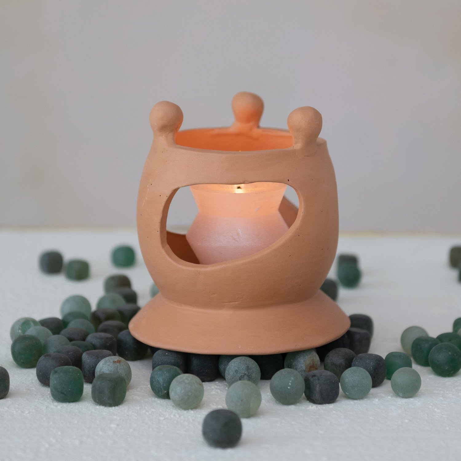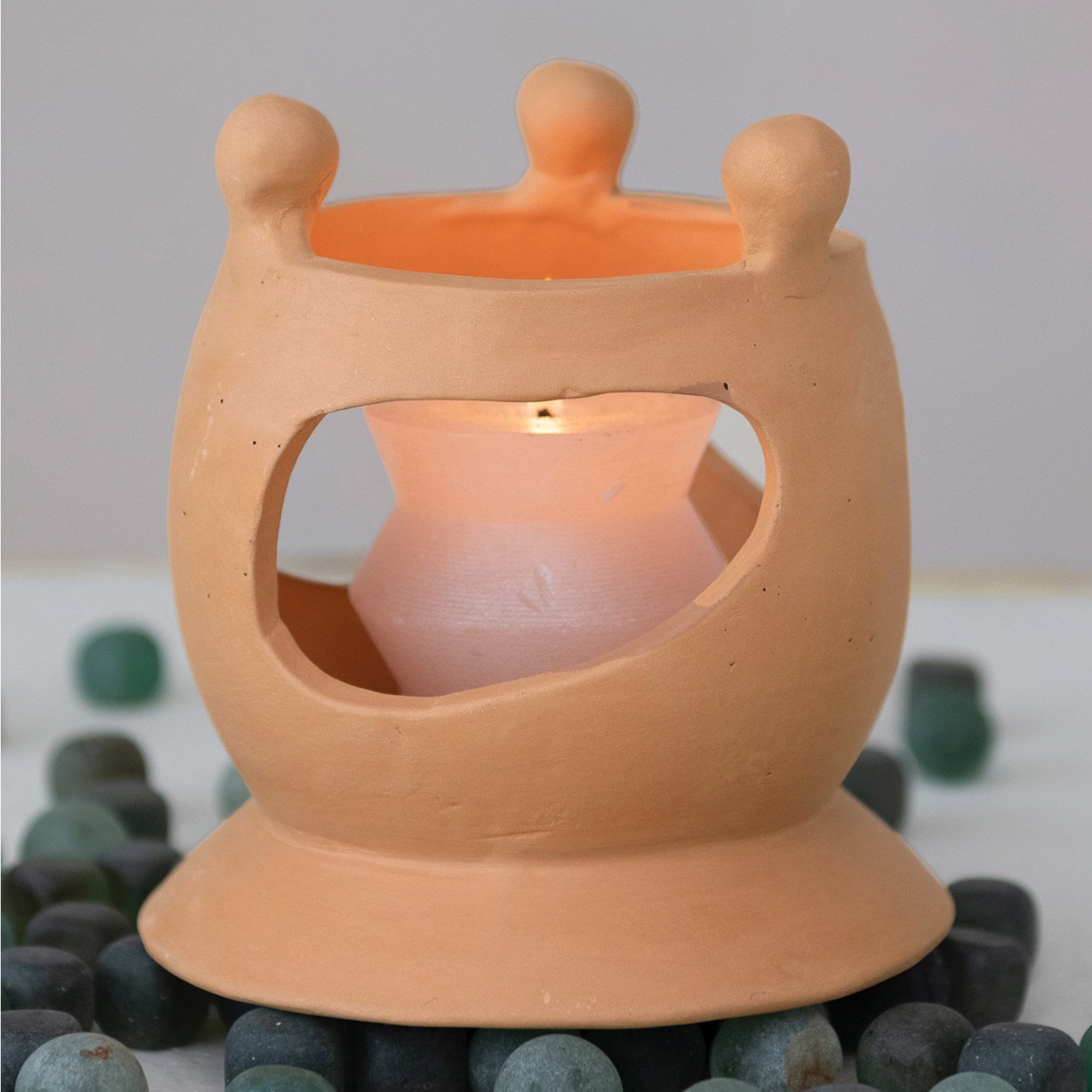 Handmade Terra-cotta Candle Holder w/ Circle of Friends