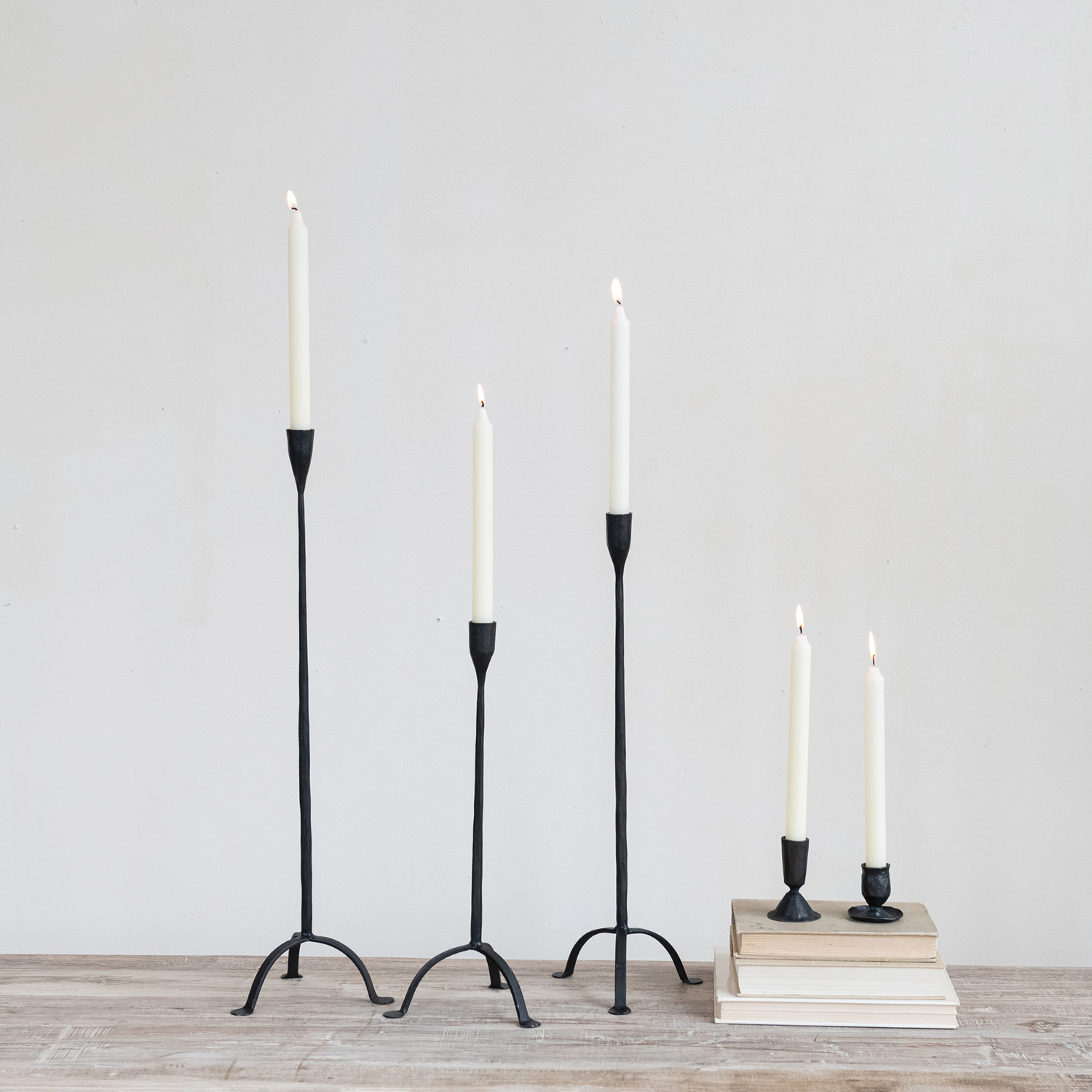 Catalog Name: 6-1/2"L x 6-1/2"W x 16"H Hand-Forged Cast Iron Footed Taper Holder