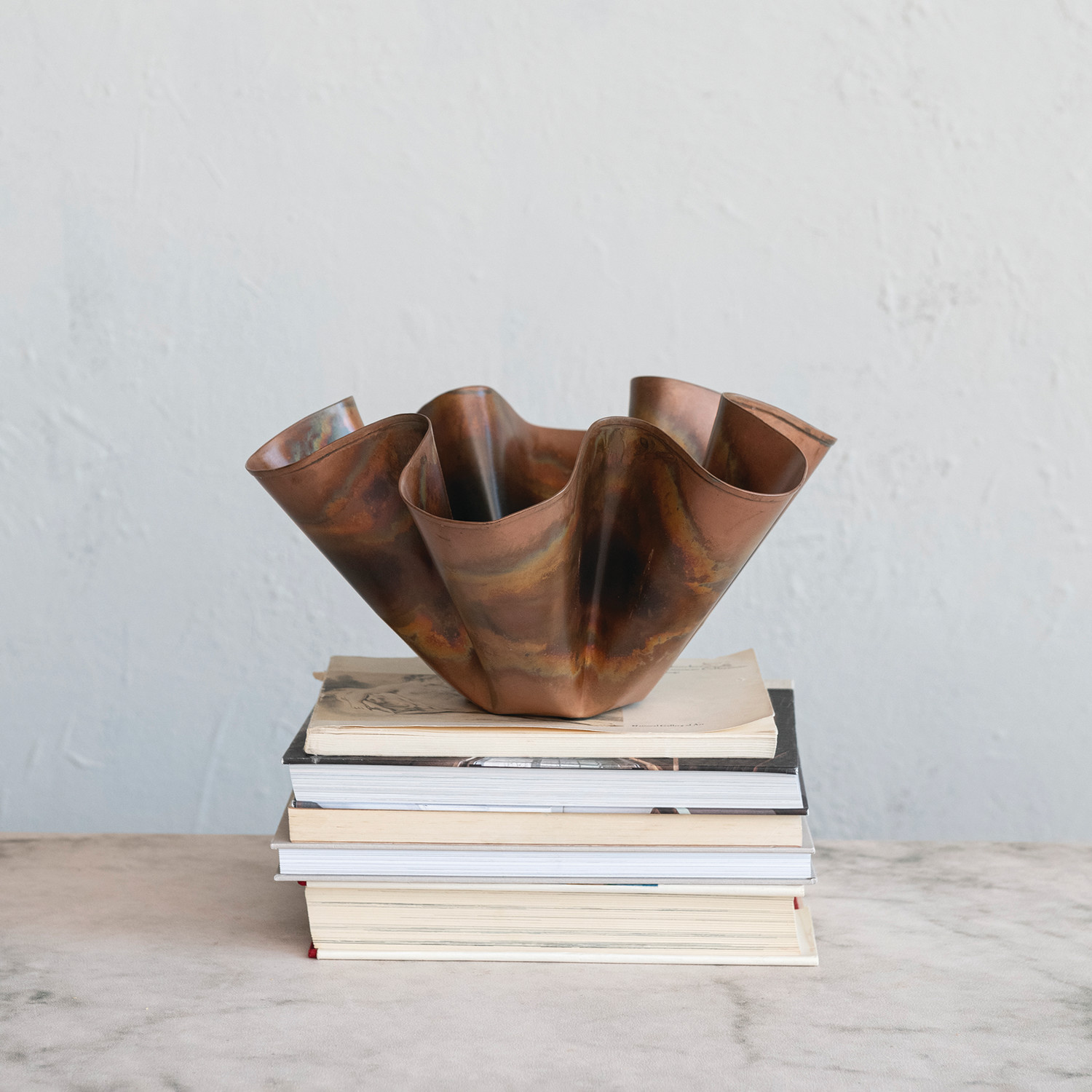 Decorative Metal Ruffled Bowl, Oxidized Copper Finish