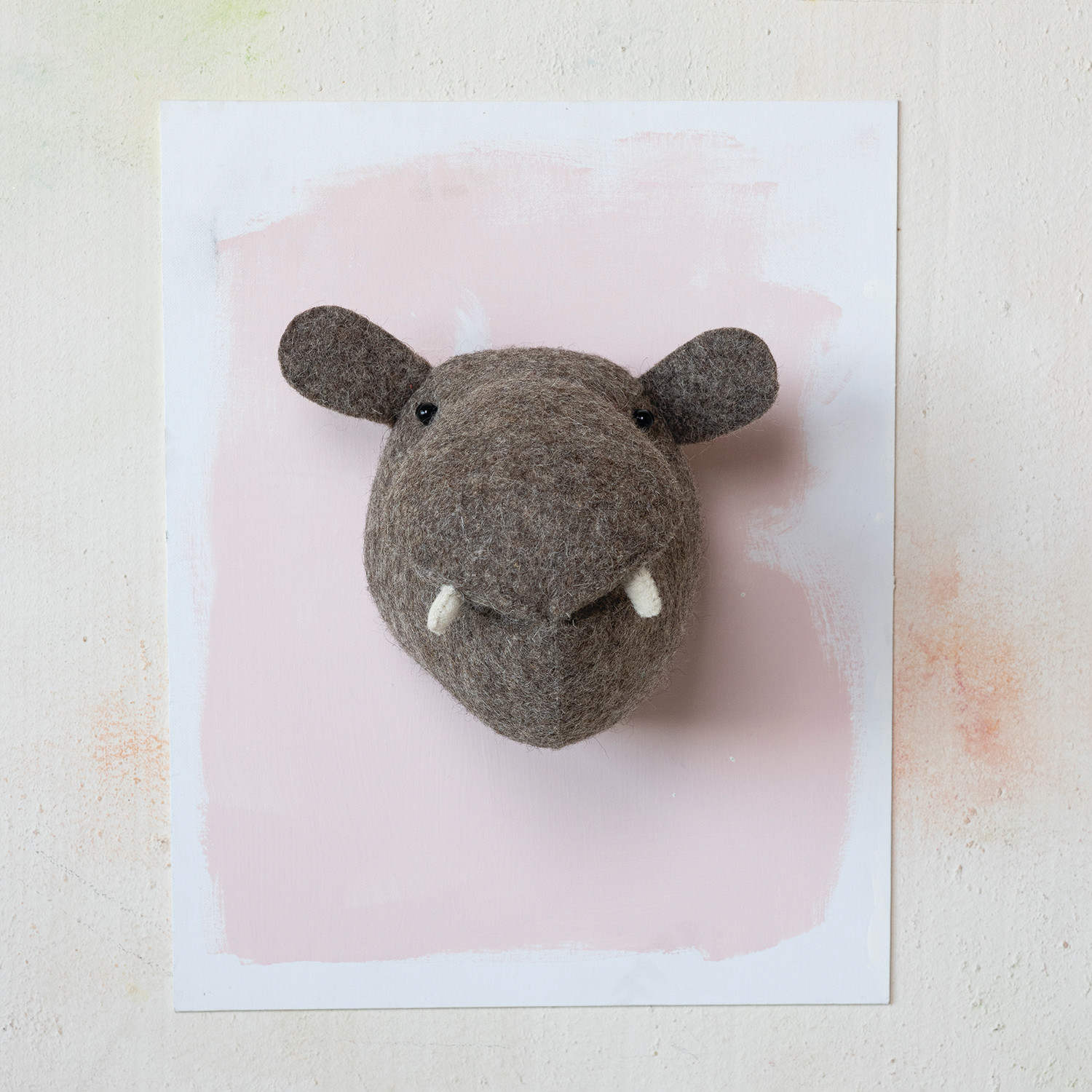 Handmade Wool Felt Hippo Head Wall Décor