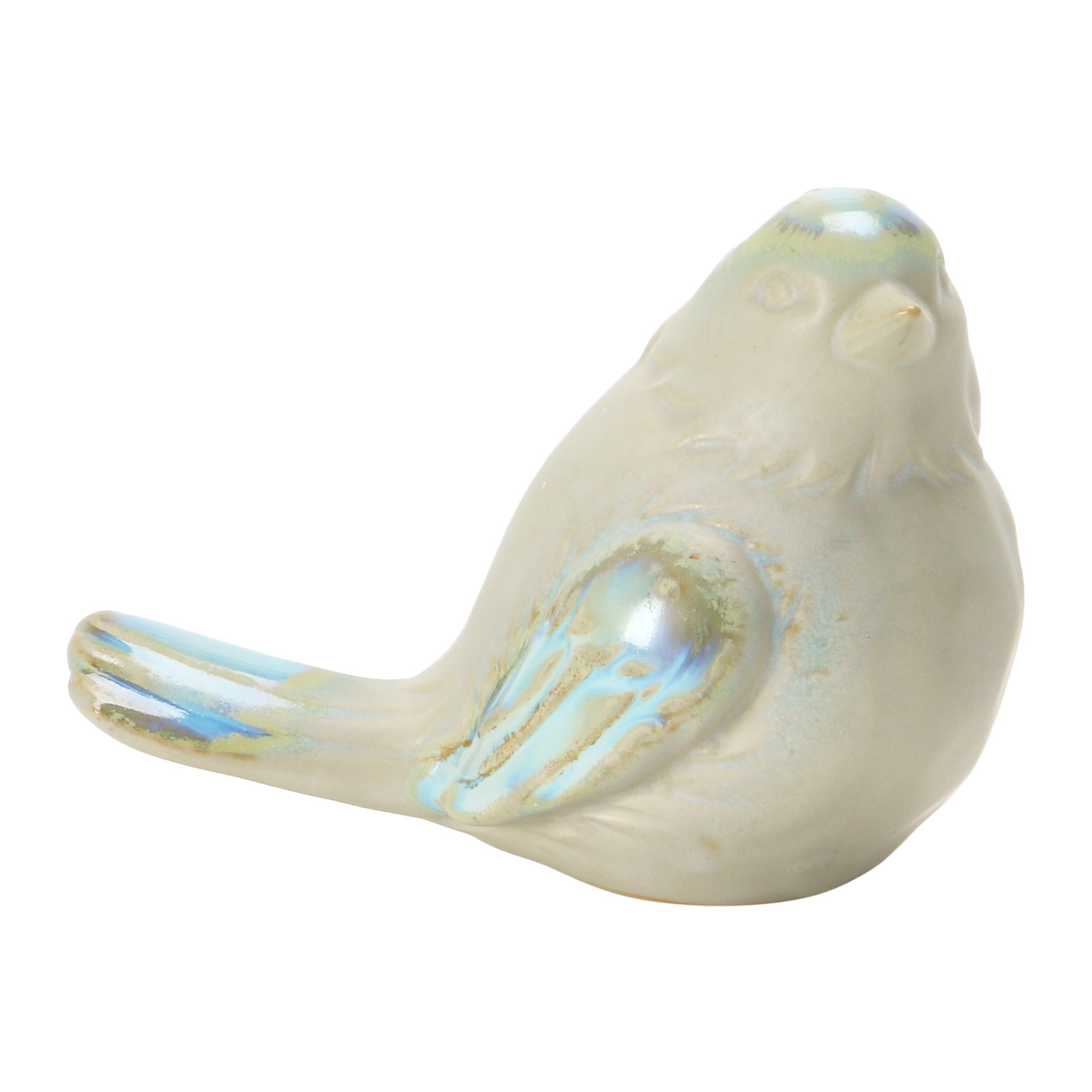 Catalog Name: 4"L x 2-1/4"W x 3-1/4"H Stoneware Bird, Reactive Glaze, White & Blue, 3 Styles (Each One Will Vary)