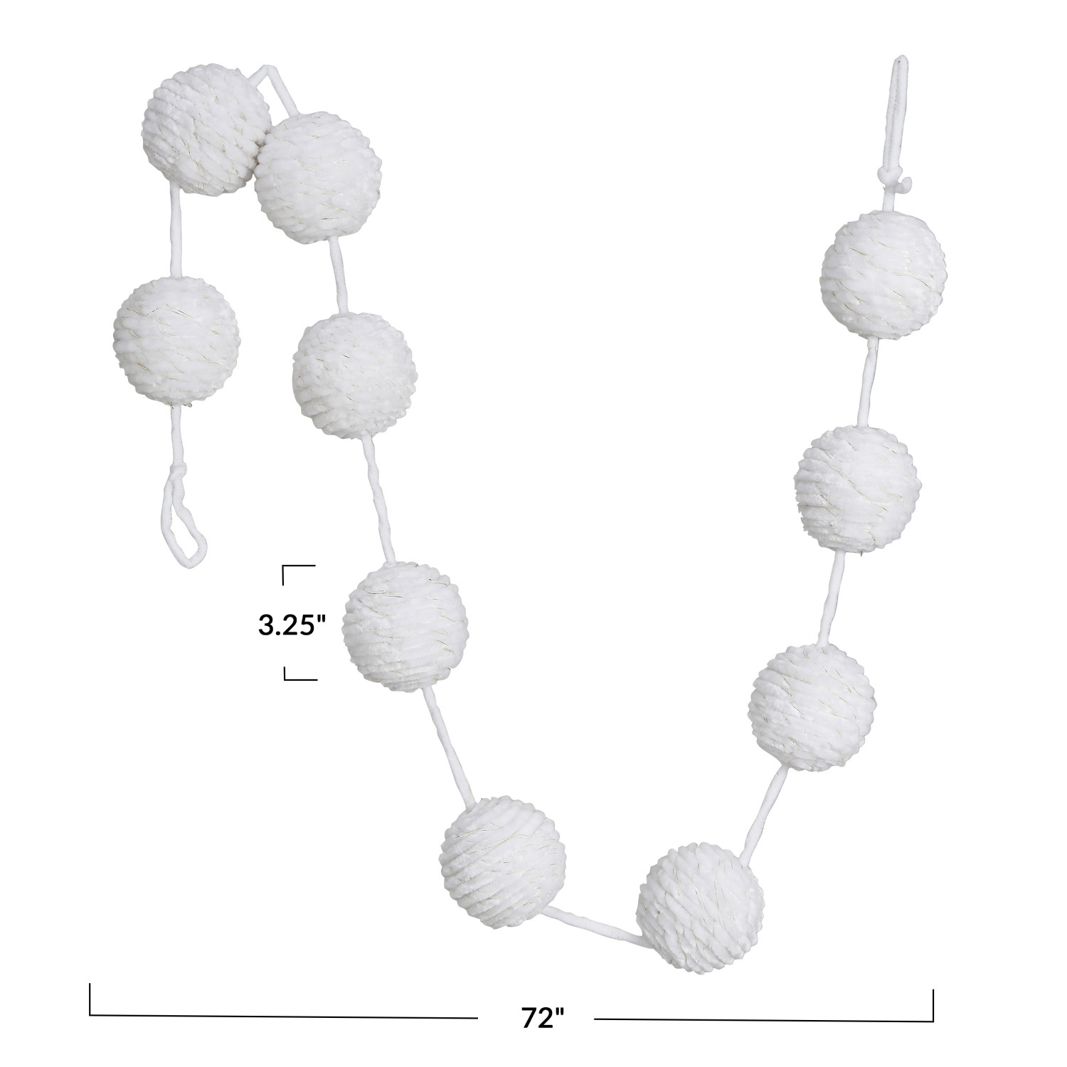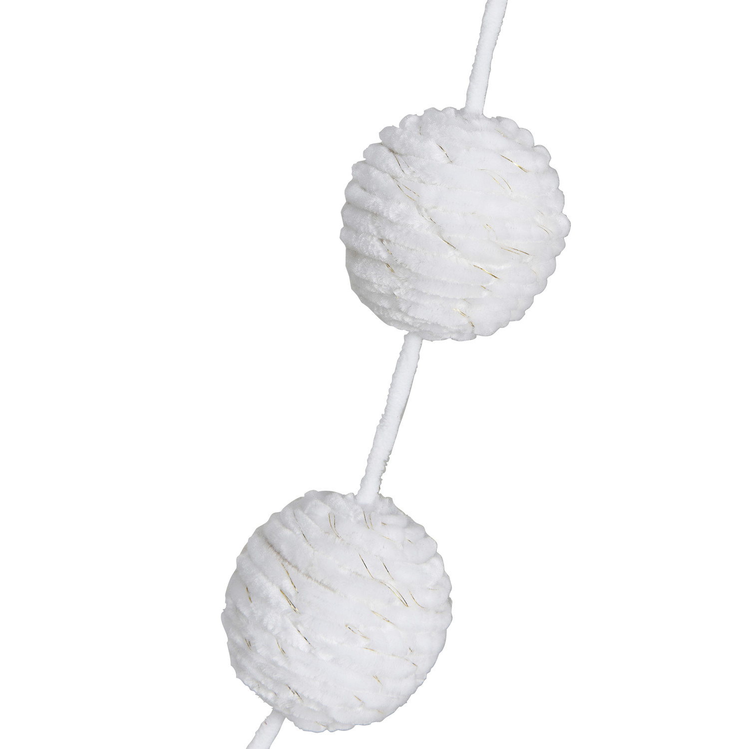 Catalog Name: 72"L x 3-1/4"H Chenille Rope Ball Garland w/ Gold Metallic Thread, White