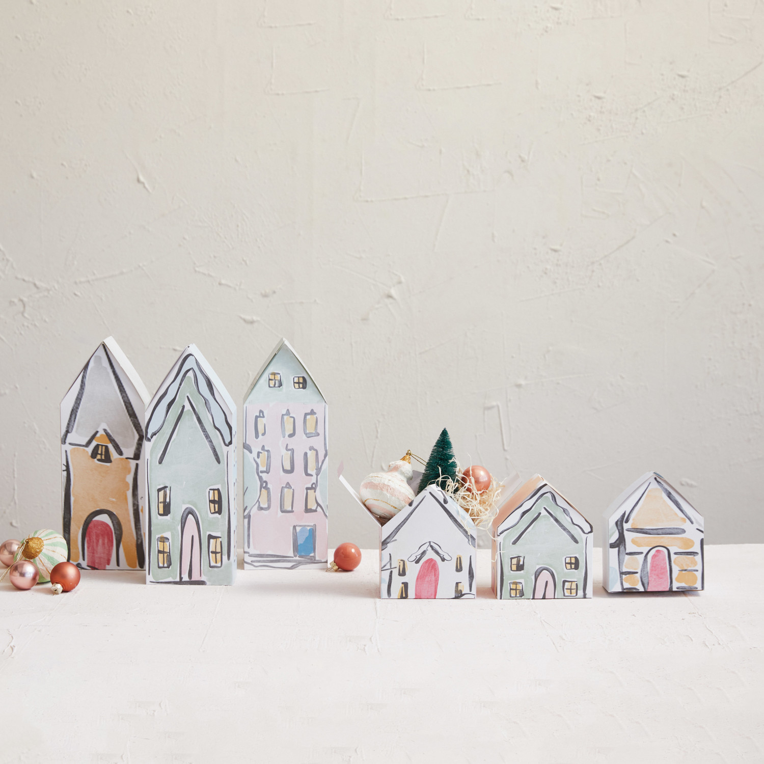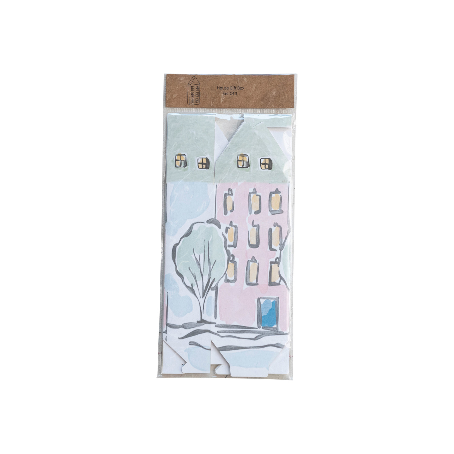 Printed Recycled Paper House Shaped Gift Boxes, Set of 3 ©