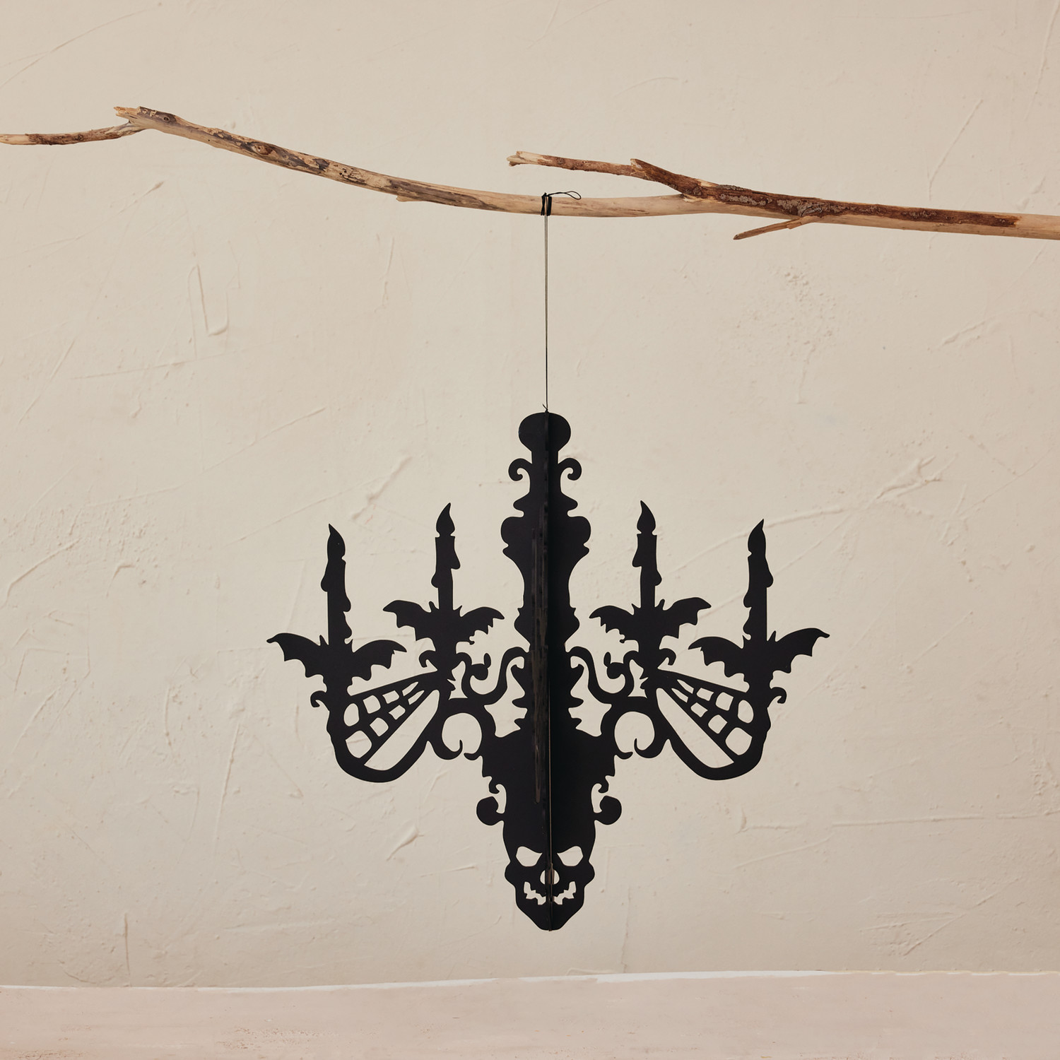 Hanging Interlocking MDF Chandelier with Bats & Spider Webs, Black