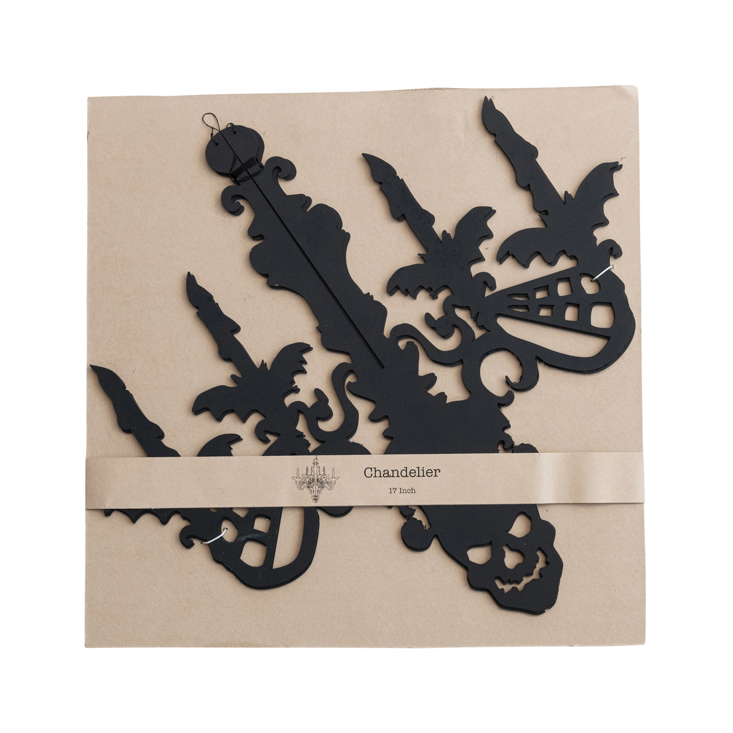 Catalog Name: 18" Round x 17"H Hanging Interlocking MDF Chandelier w/ Bats & Spider Webs, Black