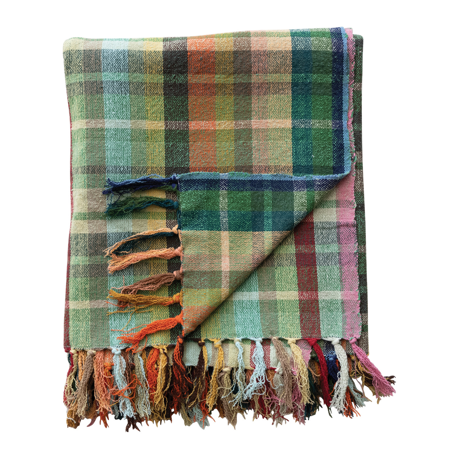 Catalog Name: 60"L x 50"W Woven Cotton Throw w/ Pattern & Fringe, Multi Color Plaid