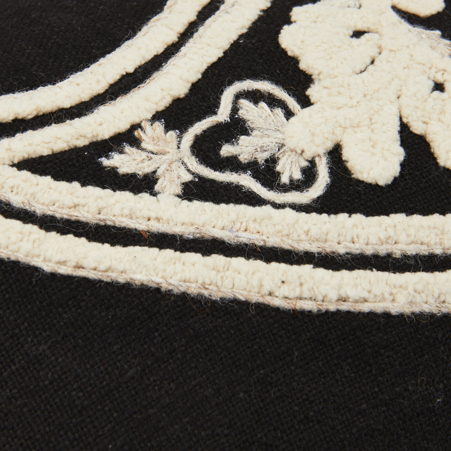 This lumbar pillow features a modern take on a classic paisley design embroidered on woven cotton slub. Woven cotton slub lumbar pillow with embroidered black and white paisley pattern; Black cotton encasement on back. Express your constantly evolving style with the simple addition of this eye-catching pillow. Removable cotton pillow cover and insert; Back zipper with hidden flap; Machine wash cold, gentle cycle; Do not bleach, warm iron if needed.