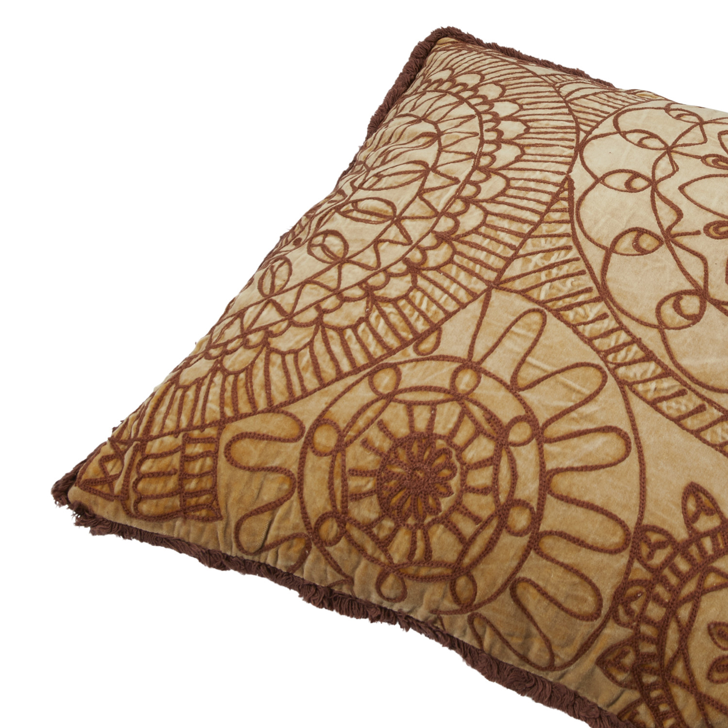 Catalog Name: 20" Square Stonewashed Cotton Velvet Pillow w/ Embroidery, Chambray Back & Tufted Fringe, Multi Color